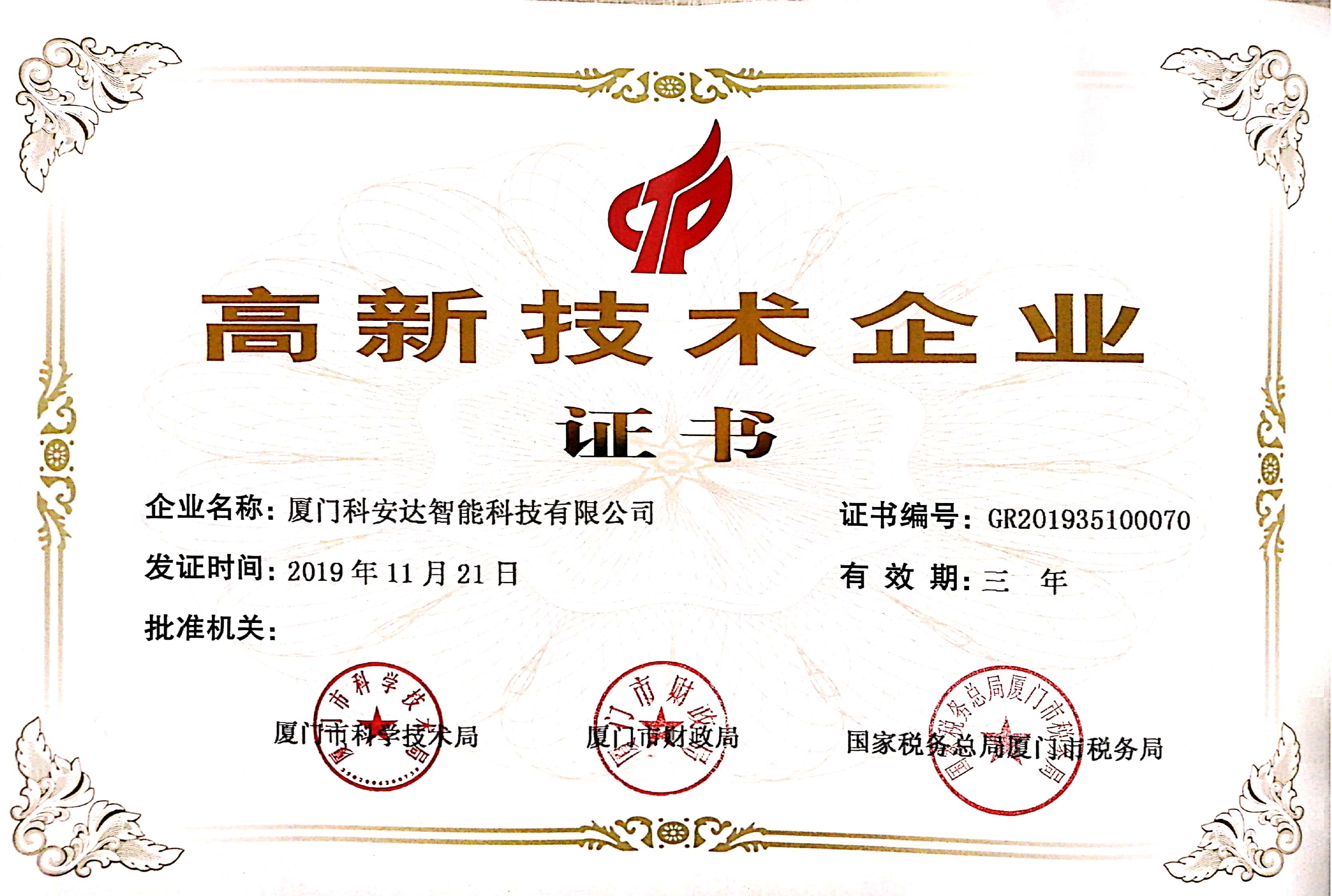 高新技術企業證書